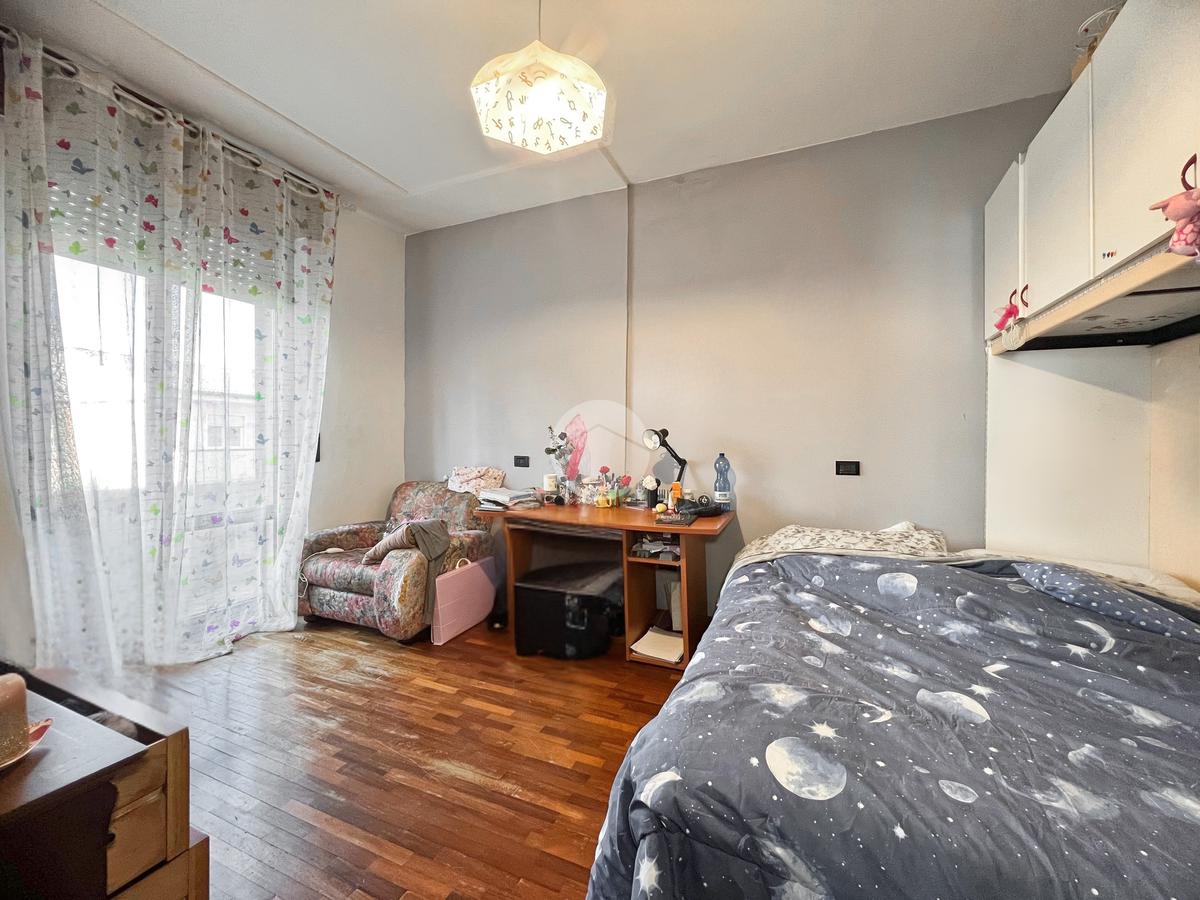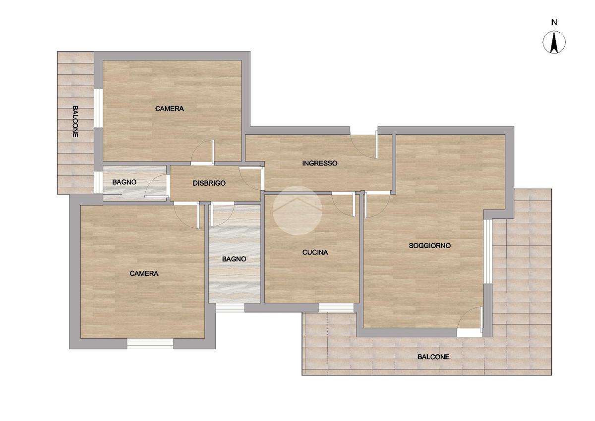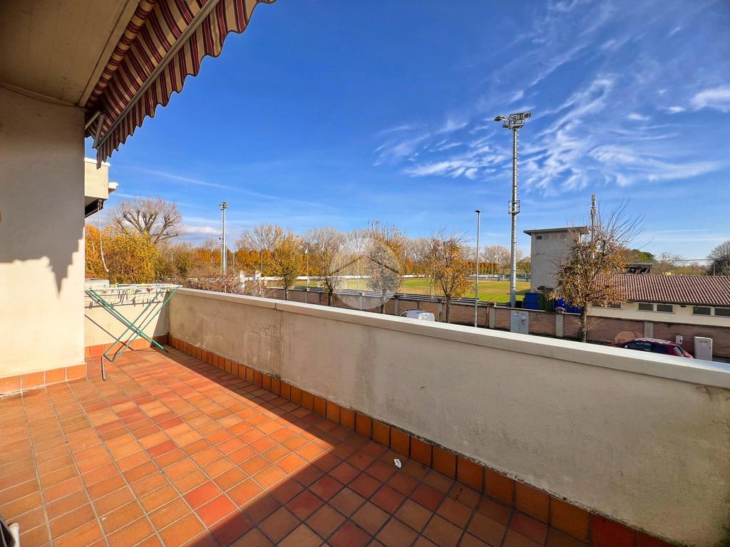 L’immobile si presenta con soggiorno e cucina separata, entrambi dotati di accesso diretto al balcone, offrendo ambienti luminosi e ben collegati agli spazi esterni. Attraverso il disimpegno si accede alla zona notte, composta da due camere da letto: una matrimoniale e una singola, quest’ultima con uscita su un secondo balcone. La soluzione dispone inoltre di due bagni, di cui uno attualmente adibito a lavanderia.