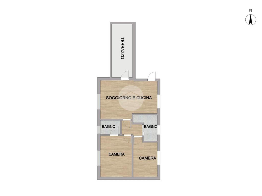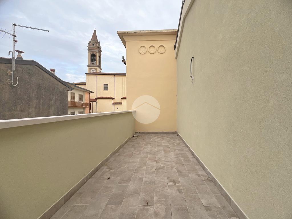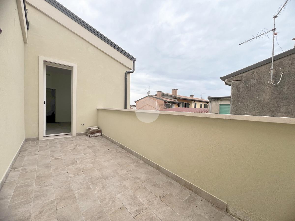 L'accesso principale dell'immobile si apre in un ampia zona giorno open space dalla quale si accede al terrazzo di circa 21 mq.