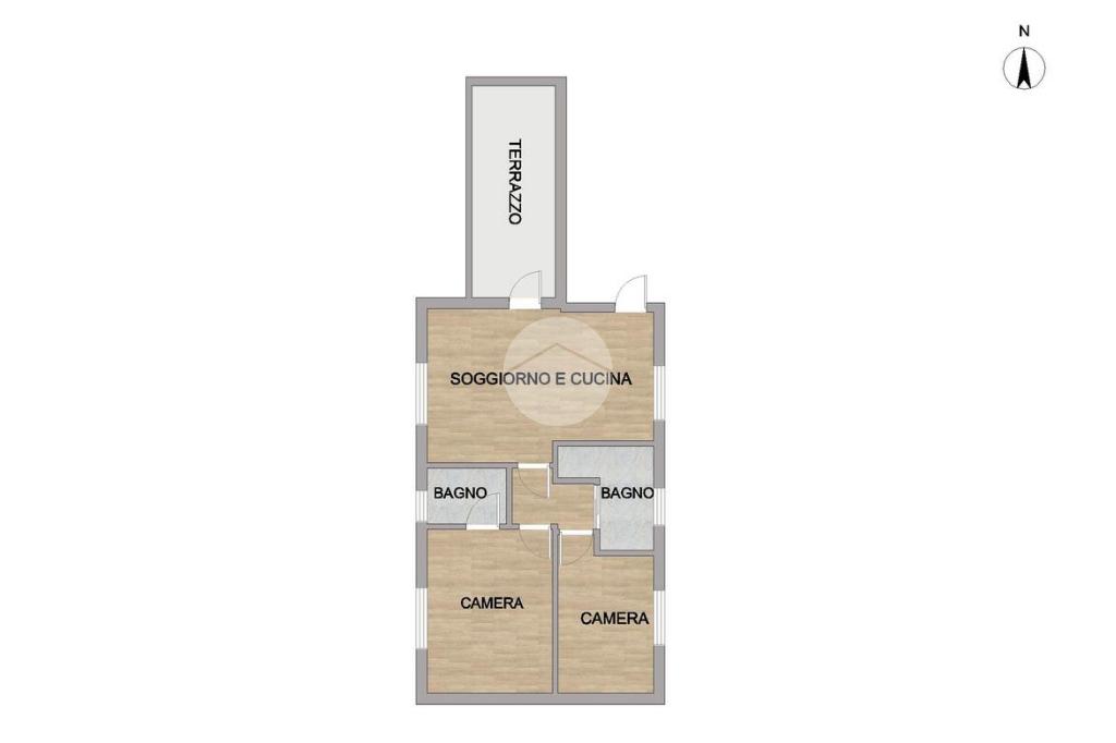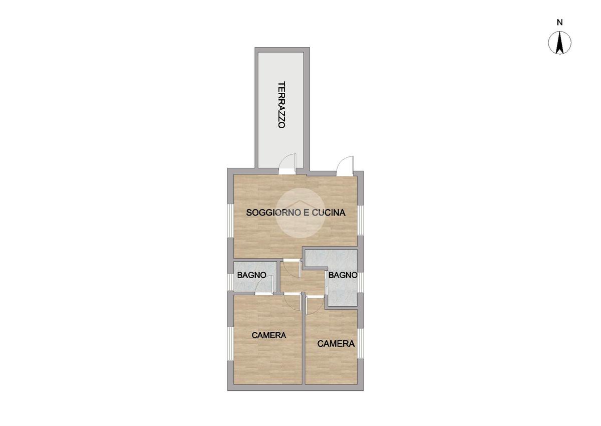 Soggiorno con angolo cottura - Due Camere da letto – Doppi servizi – Due posti auto coperti -Terrazzo