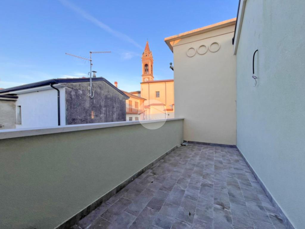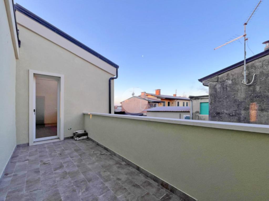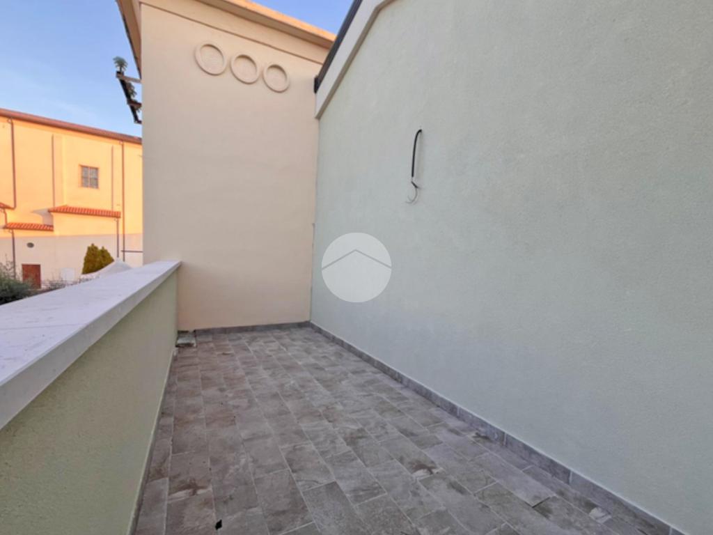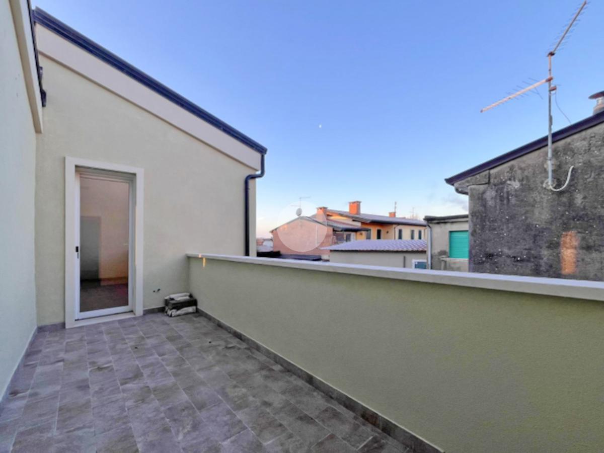 L'accesso principale dell'immobile si apre in un ampia zona giorno open space dalla quale si accede al terrazzo di circa 21 mQ