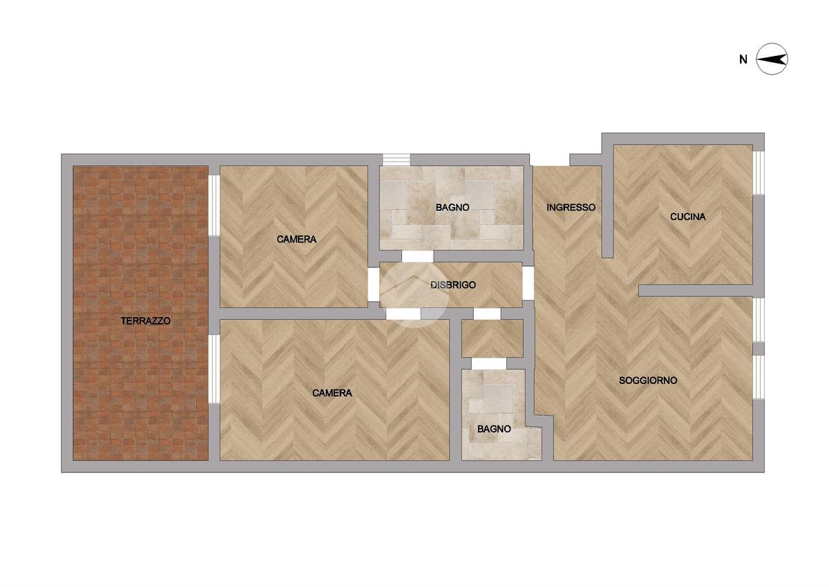Soggiorno – Cucina – Due camere – Terrazzo – Bagno – Lavanderia – Garage - Cantina