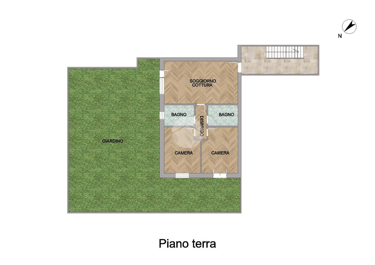 Ingresso - Soggiorno Cucina - due camere da letto - Due Bagni- Giardino - Garage doppio
