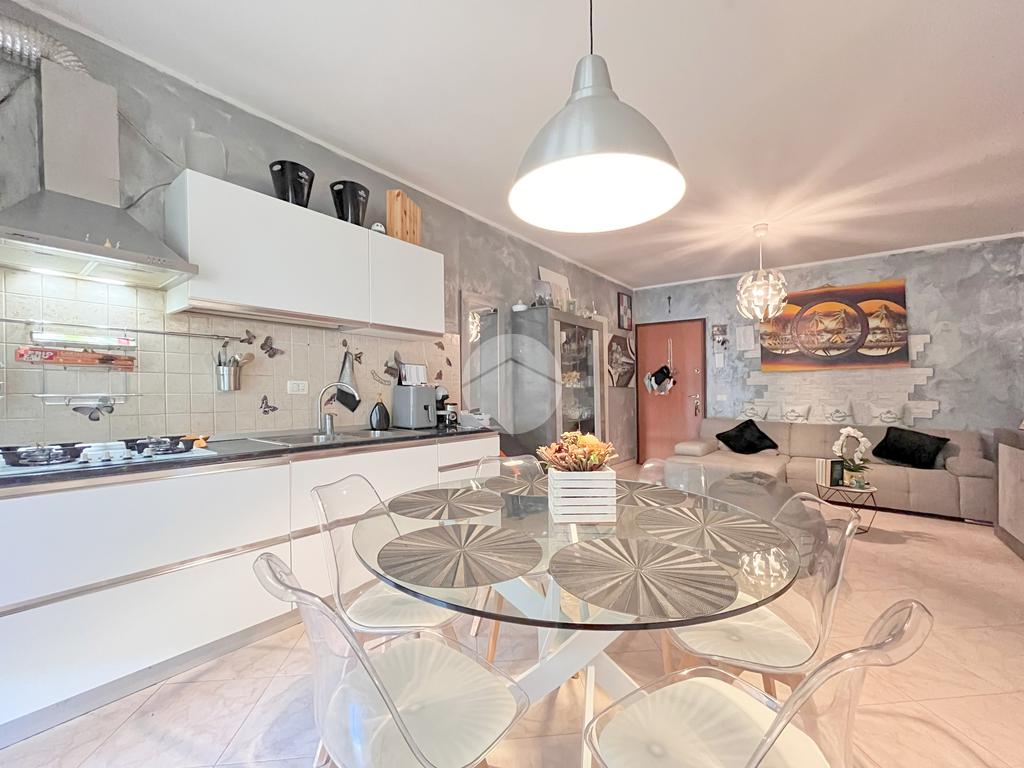 L'ingresso principale dell'immobile si apre su una spaziosa zona living con soggiorno e angolo cottura garantendo praticità e comfort.