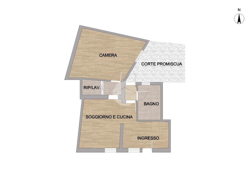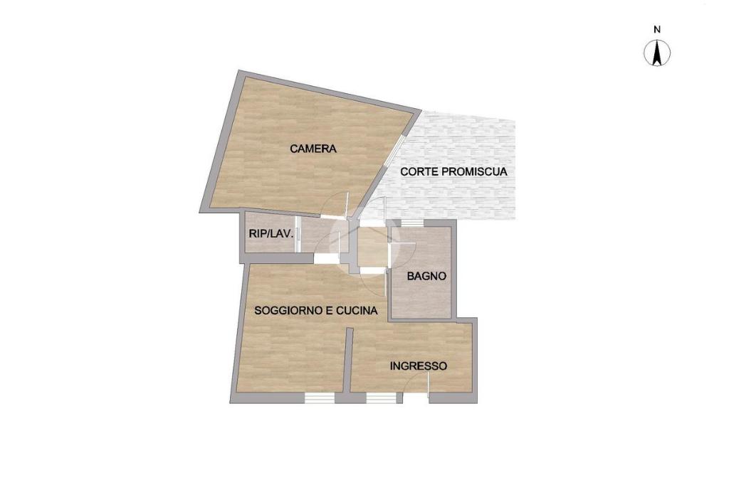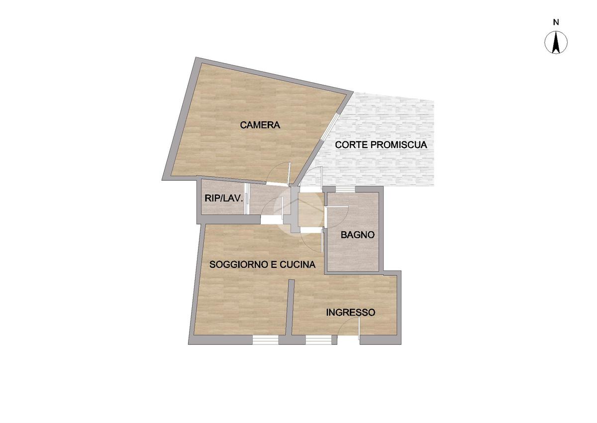 Soggiorno con cucina – Camera matrimoniale – Bagno finestrato – Ripostiglio/Lavanderia