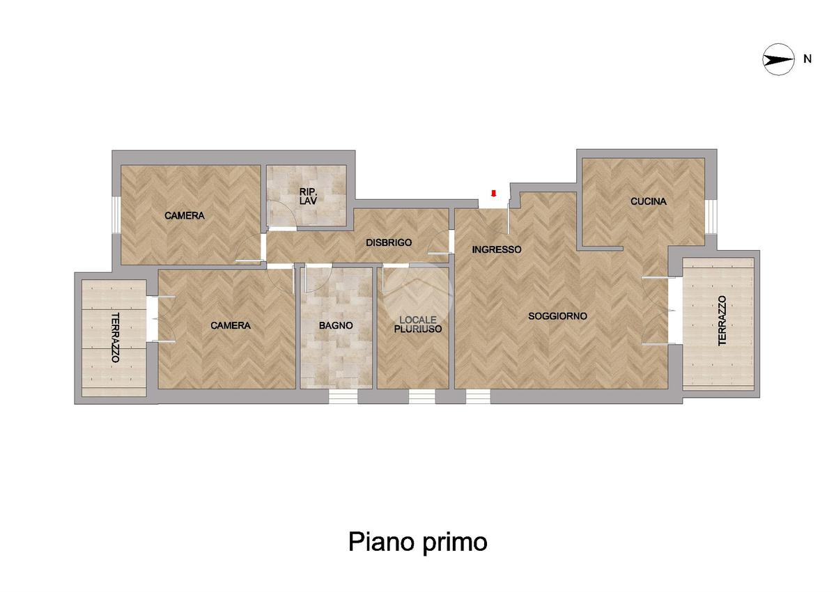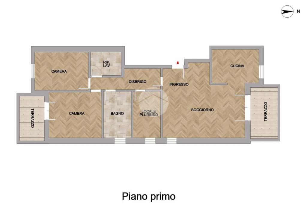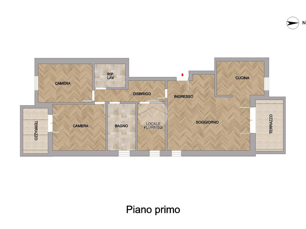 L’immobile, situato al piano primo, si apre su un ingresso che conduce a un luminoso soggiorno con cucina a vista in open space, valorizzato da una porta finestra con accesso diretto al terrazzo. Attraverso un disimpegno si accede alla zona notte, composta da due camere da letto, di cui una matrimoniale con uscita sul terrazzo e una spaziosa camera doppia. E’ inoltre presente un locale pluriuso, attualmente utilizzato come terza camera, facilmente adattabile a diverse esigenze, come studio o stanza hobby. A seguire troviamo un bagno finestrato completo di doccia, e un comodo ripostiglio/lavanderia.