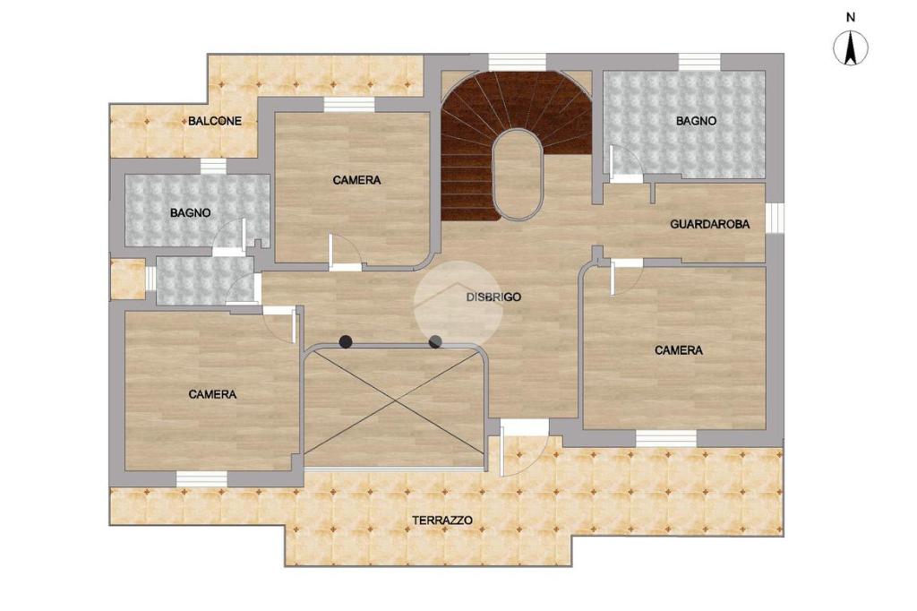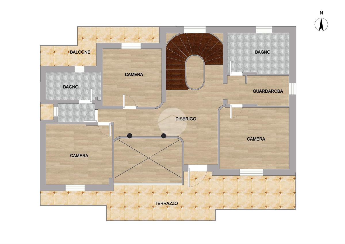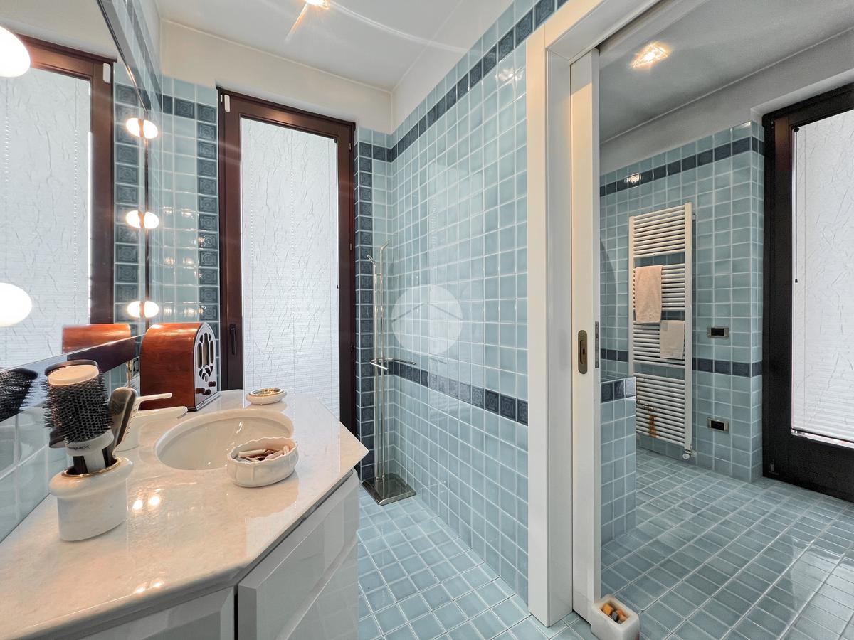 Salendo al piano primo, troviamo tre camere da letto di cui due matrimoniali e una doppia, ognuna delle quali con accesso diretto al terrazzo e progettate per offrire un rifugio tranquillo e accogliente. I due bagni finestrati e il guardaroba aggiungono ulteriore comfort e praticità alla zona notte.