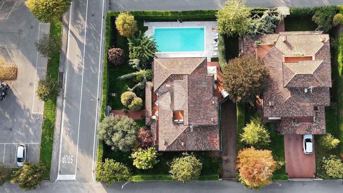 Il giardino inoltre è impreziosito da una piscina privata, che non solo valorizza l'esterno, ma rappresenta la cornice perfetta per giornate spensierate in famiglia e serate estive tra amici.