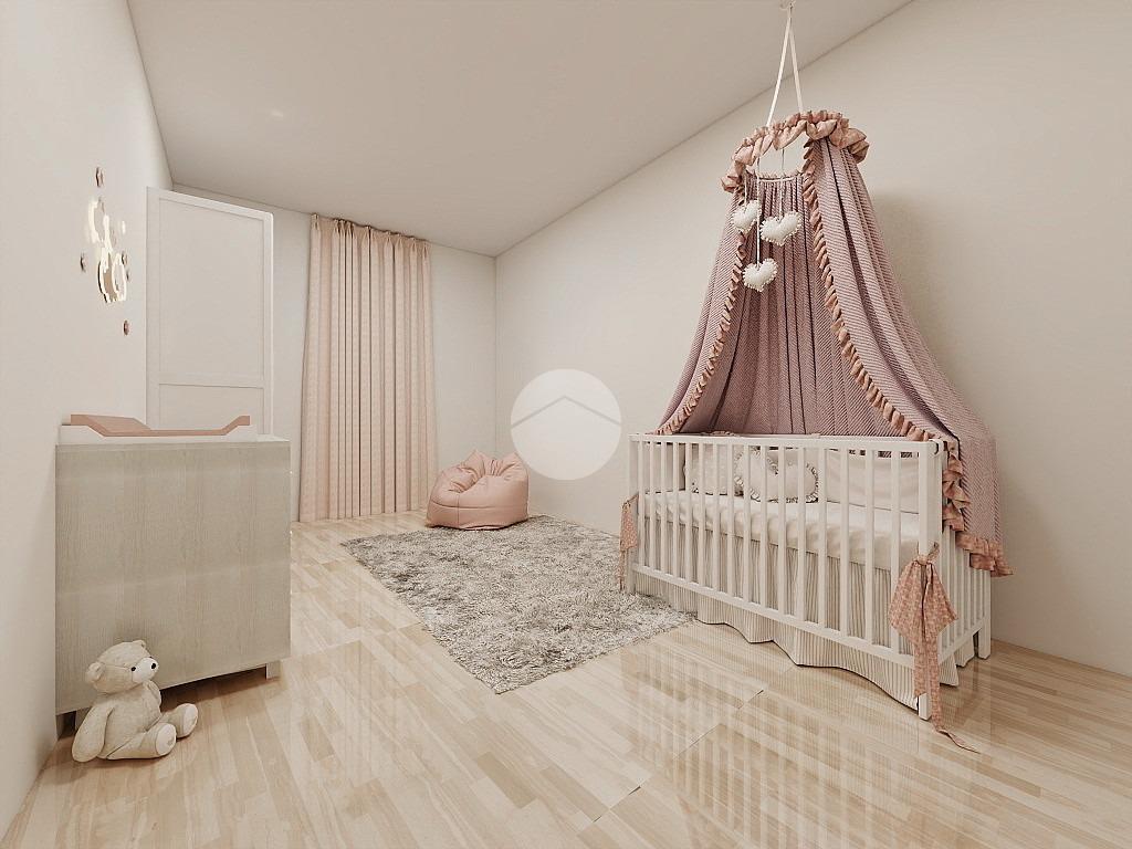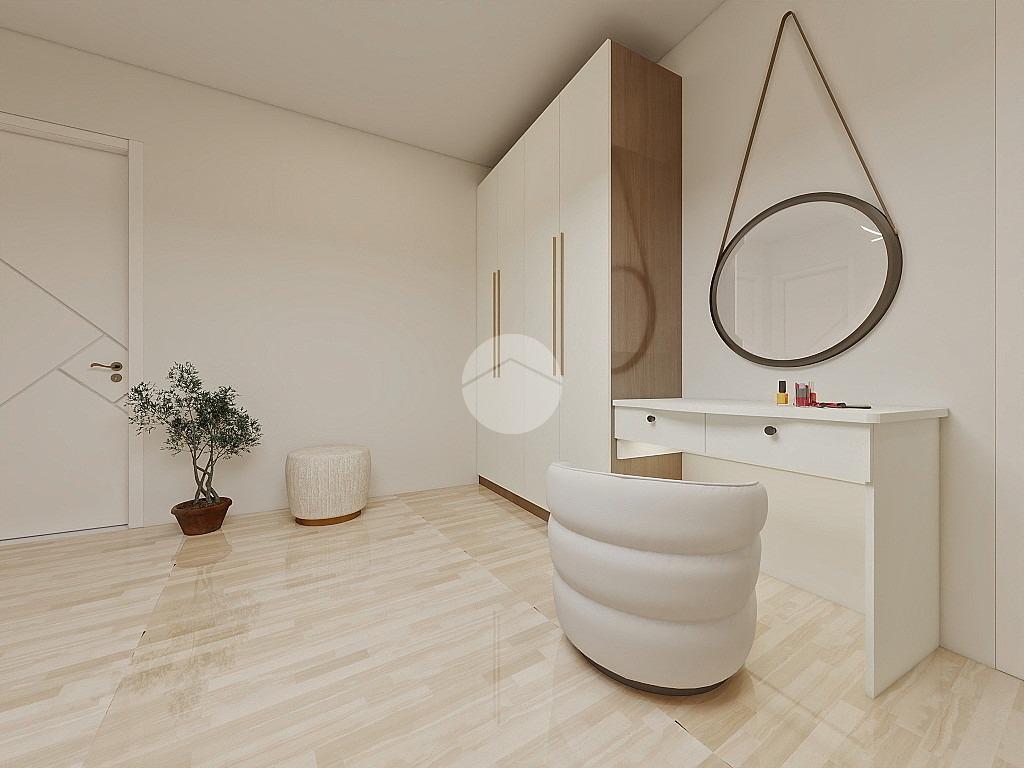La zona notte è organizzata con tre camere da letto, doppi servizi e un ampio disbrigo adibito a guardaroba, ideale per chi cerca spazi ben distribuiti e funzionali.