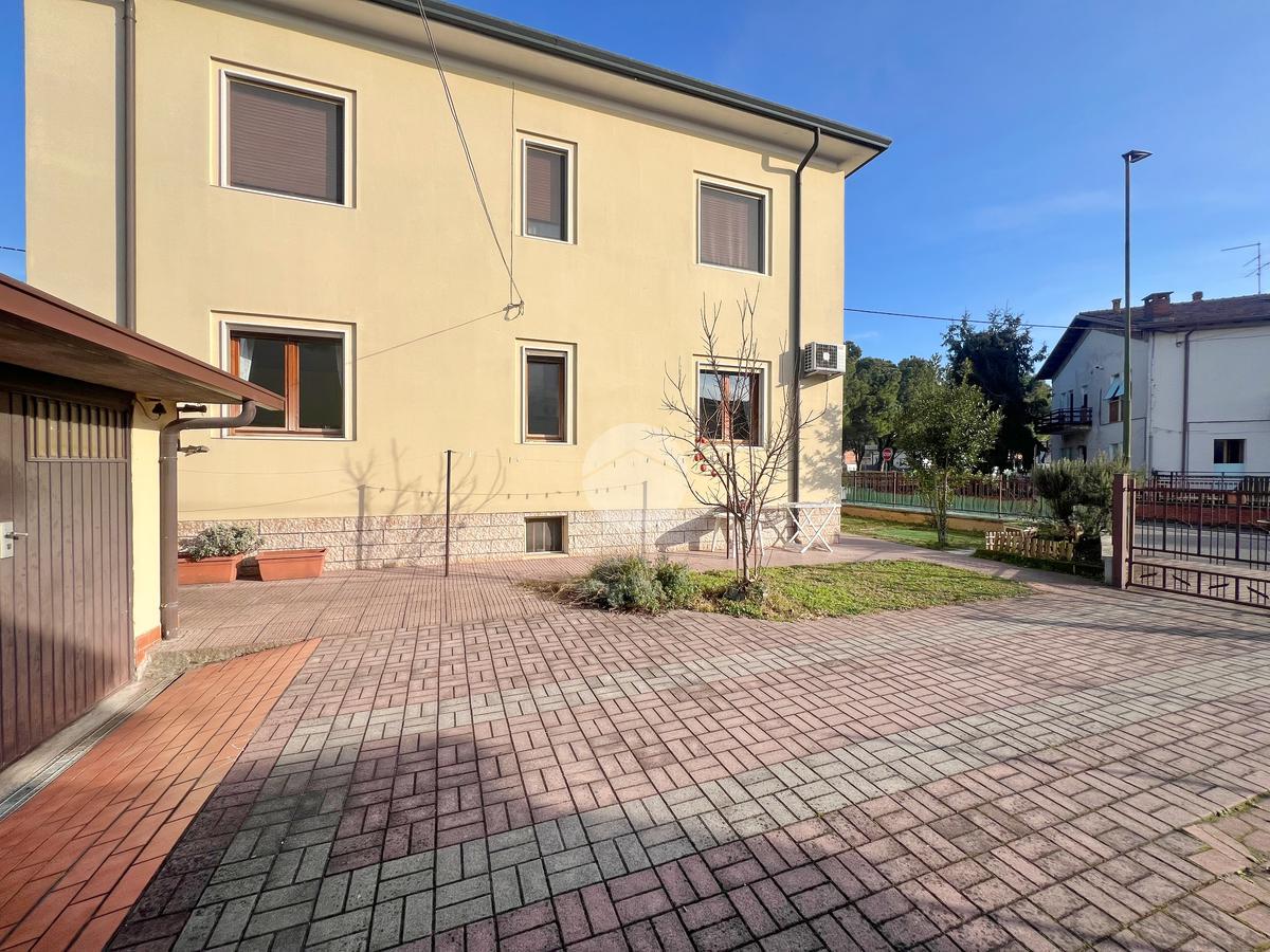 In una tranquilla zona residenziale di Santa Maria di Zevio, all'interno di una porzione di bifamiliare, proponiamo un appartamento al piano rialzato con ampia corte esclusiva che abbraccia l'immobile su tre lati.