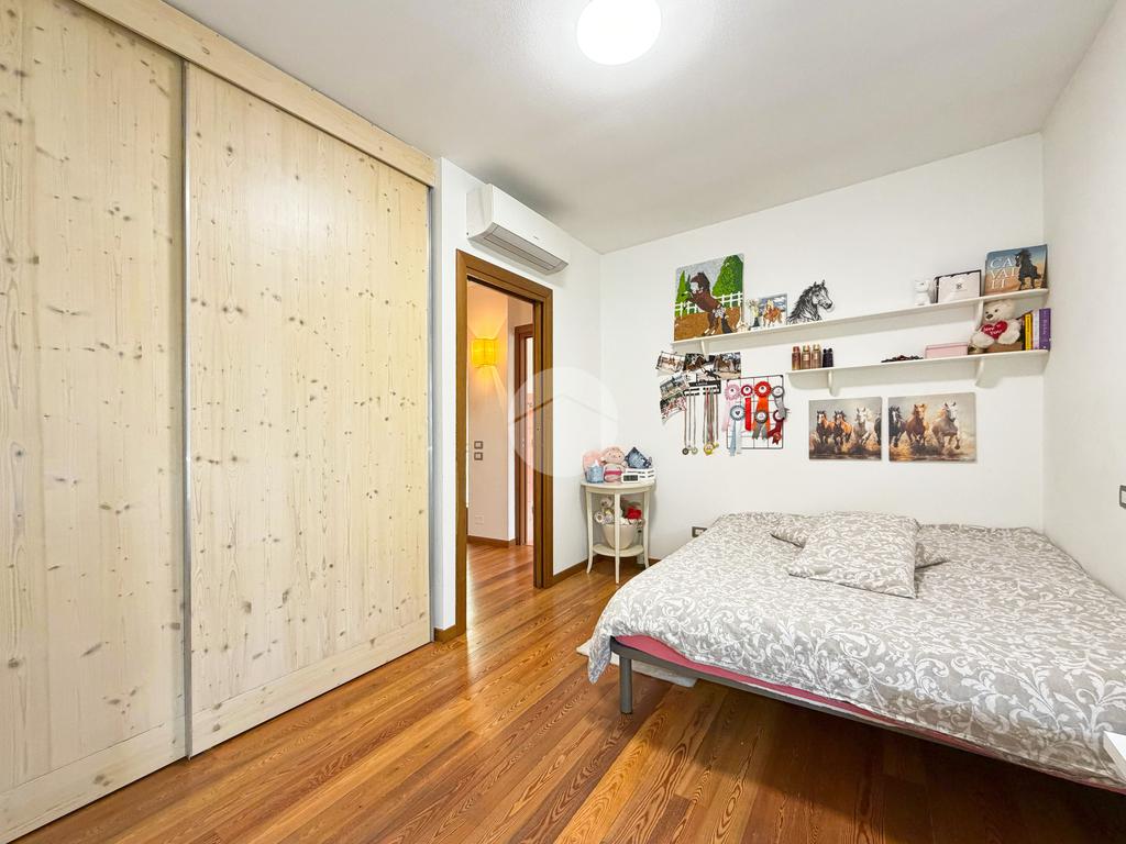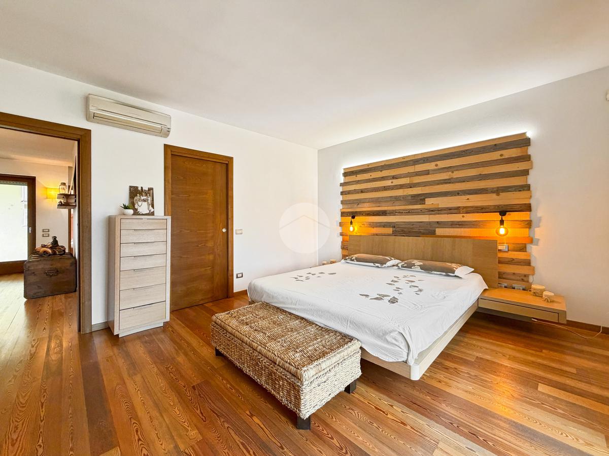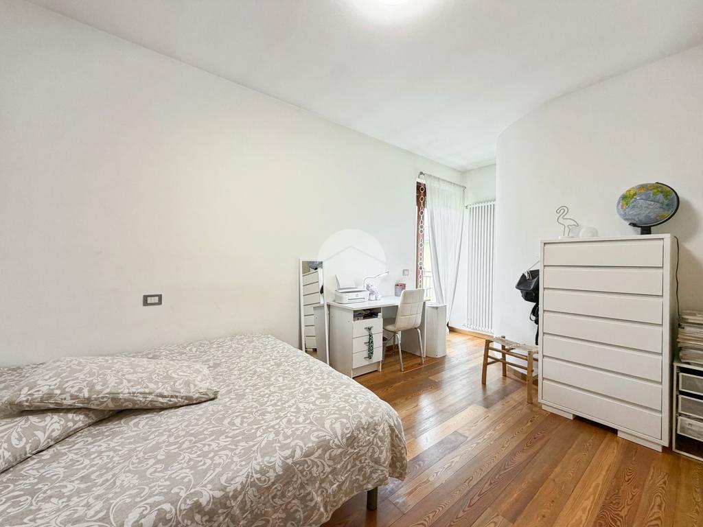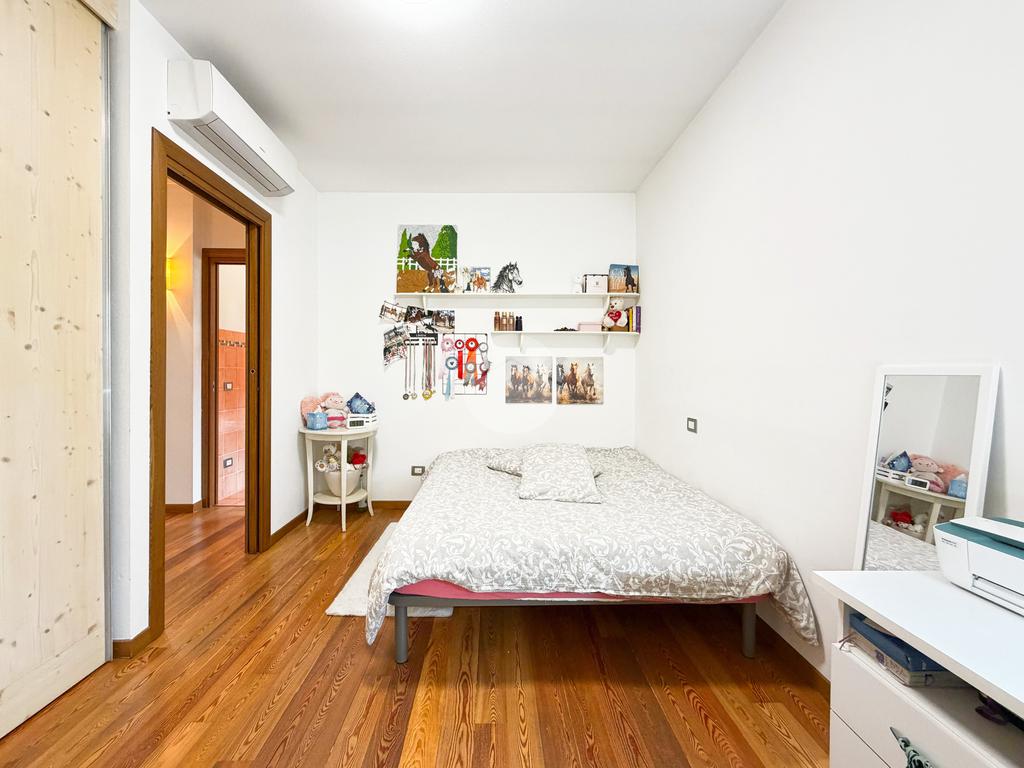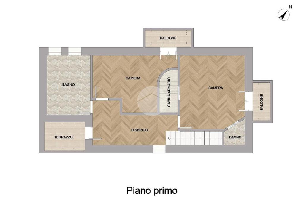 Al piano superiore, tramite un comodo disimpegno, si sviluppa la zona notte composta da due ampie camere da letto matrimoniali, entrambe dotate di accesso diretto al balcone. Una delle due camere è dotata di un bagno e una stanza attualmente utilizzata come guardaroba, aumentando la funzionalità e l'ordine della zona notte. Infine troviamo un ulteriore bagno finestrato completo di vasca.