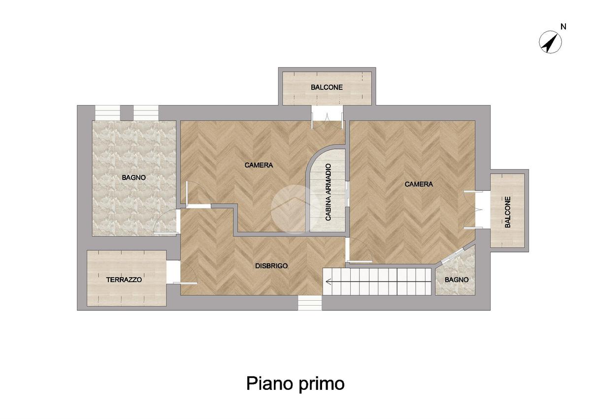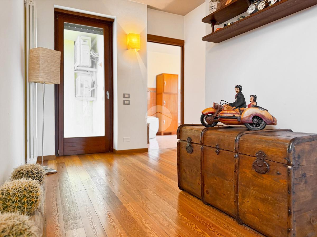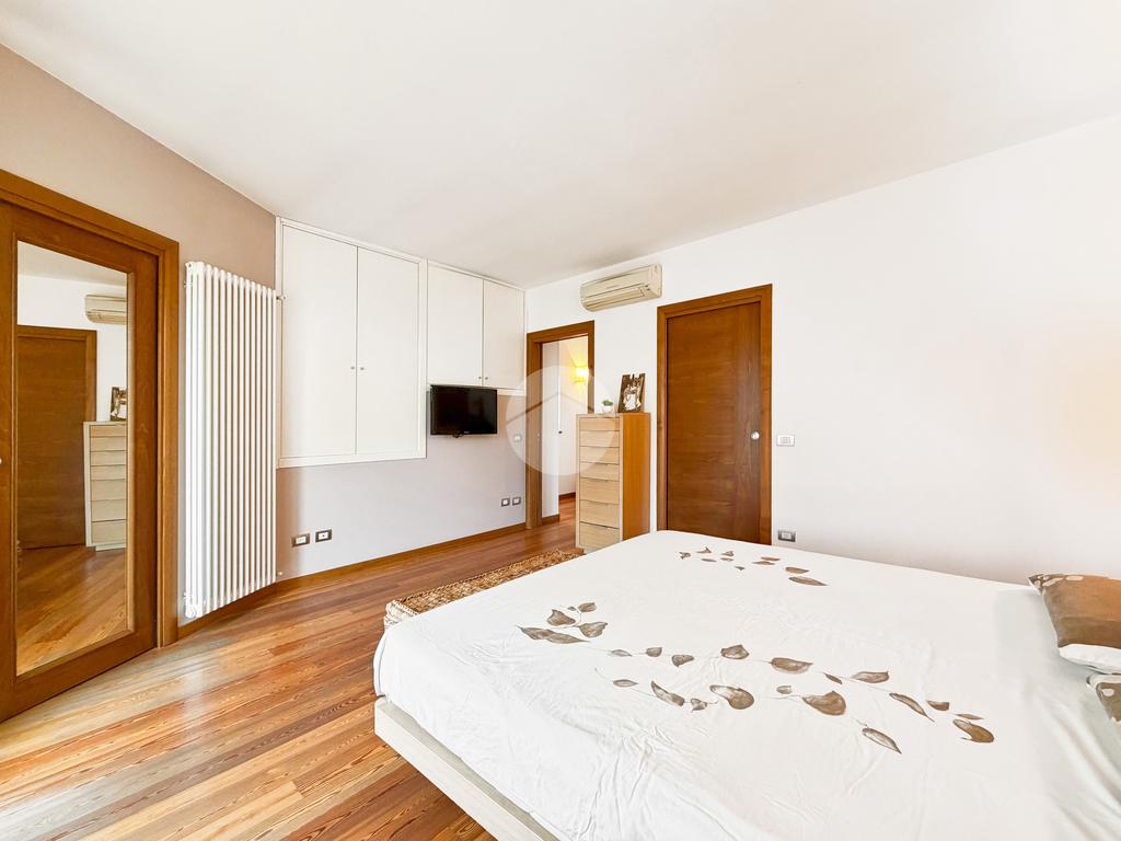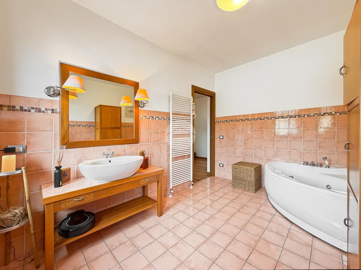 Al piano superiore, tramite un comodo disimpegno, si sviluppa la zona notte composta da due ampie camere da letto matrimoniali, entrambe dotate di accesso diretto al balcone. Una delle due camere è dotata di un bagno e una stanza attualmente utilizzata come guardaroba, aumentando la funzionalità e l'ordine della zona notte. Infine troviamo un ulteriore bagno finestrato completo di vasca.